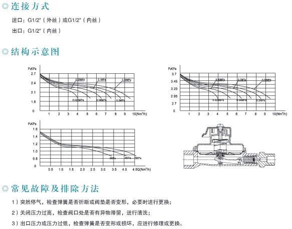 *用途: 本調壓器是專門為城市燃氣壓進戶供氣而研制的,產品的設計制造參考了國外的樣機和結構原理,經我公司 技術人員精心設計,開發研制而成。 本調壓器主要用于天然氣、人工煤氣、液化石油氣、礦進****氣、沼氣等城市輸配管道的穩壓和壓力調節。*主要技術參數進口壓:P1:0.005~0.3MPa出口壓力P2:1~5KPa額定流量:1-6Nm3/h穩壓精度:δP2≤10%通徑:DN15